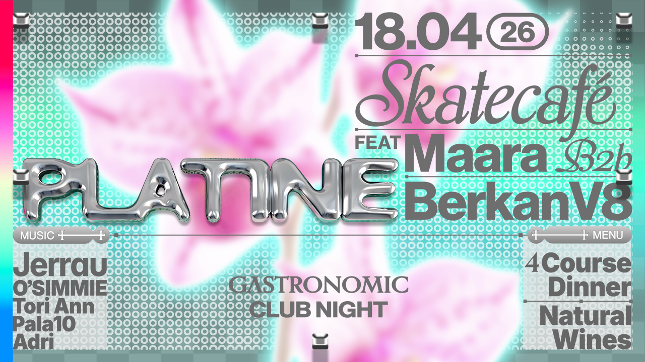 On April 18 Platine will be hosting the fourth edition at Skatecafe with a beautiful line up. They’ll be serving a 4 course dinner with a selection of the best natural wines. The dinner will guide you into the clubnight where we host three different rooms.