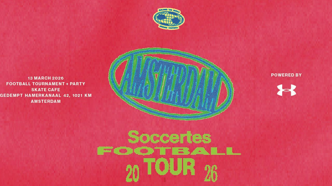 After stops in Milan, Paris, and London, the Soccertes Football Tour rolls into Skatecafe for the grand finale. The first kick-off is at 18:30. Once the final whistle blows, Soccertes flips the mainroom straight into party mode, with DJs from Amsterdam and beyond taking over the decks.